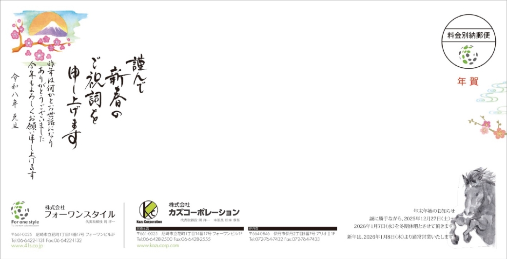 誠に勝手ながら、年末年始の休業日を下記の日程とさせていただきます。