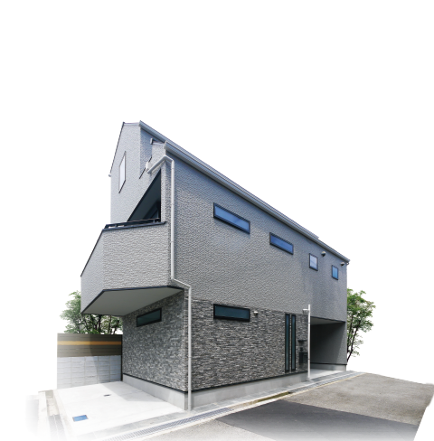 狭小地や厳しい斜線規制といった制約を、設計の工夫によって魅力へと転換した邸宅です。限られた敷地の中で、開放感と快適性を追求し、暮らしの中に“豊かさ”を生み出しました。外観は、タイル柄の貼り分けとグレーの統一感で、角地ならではの存在感を演出。内部は、動線の効率化や収納の最適化により、狭さを感じさせない広がりを実現しています。3階まで自然光が届く明るい空間構成に加え、採光や視線の抜けを計算した設計が、日常を心地よく包み込みます。制限を恐れず、工夫を楽しむ。その発想が、この家の個性を形づくりました。