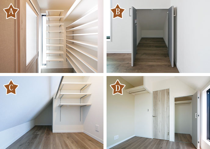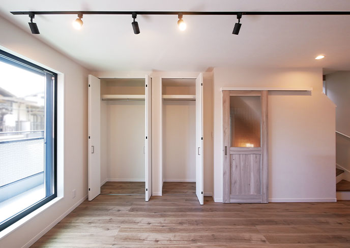 ❾3階洋室2部屋には圧迫感を緩和するオープンクローゼットを採用。サッと使えて便利な開放収納。