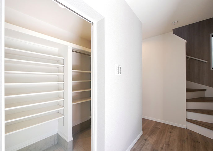 ❻玄関は家族が通るウォークスルーのシューズクロークを完備。物が多くても玄関はいつもスッキリ。