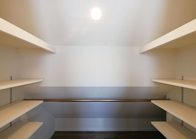 ❿3階居室に2部屋に挟まれる形で設けられた、家族が共用で使えるファミリークローゼットを完備。