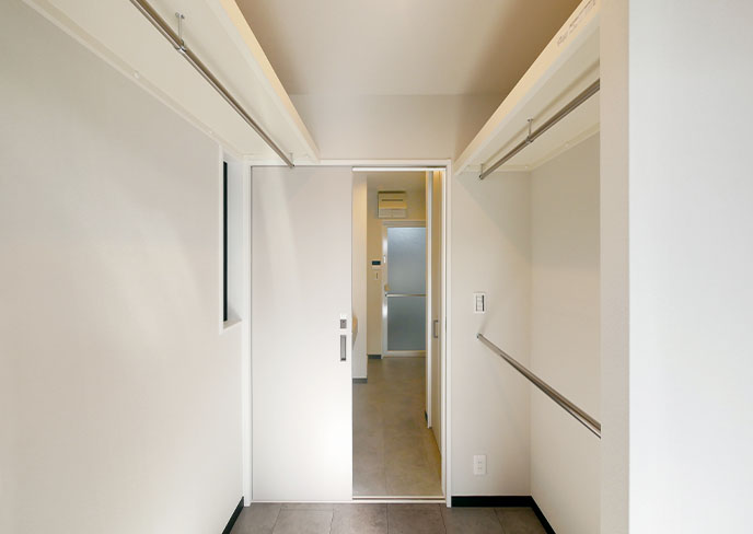 ❿主寝室には大容量のウォ―クインクローゼットを完備。ハンガーパイプ・可動棚で使い易い収納を実現。