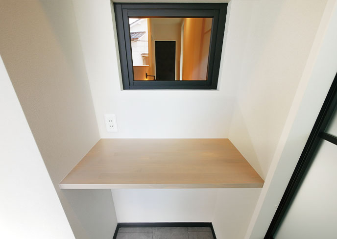 ファミリークローゼット内にはアイロン掛け等に便利な、コンセント付家事カウンターを設置。