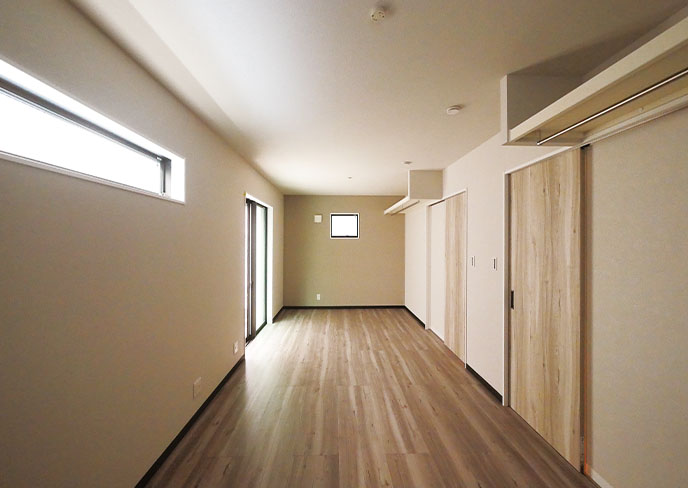 ❽お子様の成長に合わせてご利用頂ける2ドア設計の子ども部屋。圧迫感のないオープンクローゼットを採用。