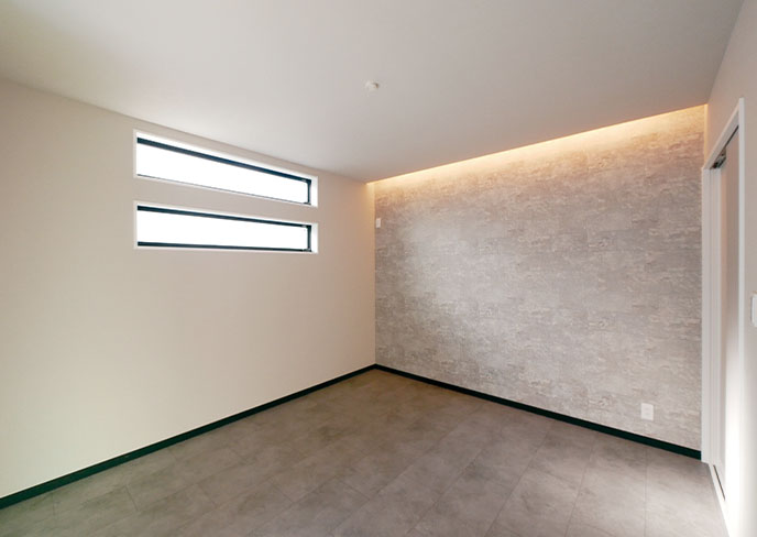 ❾主寝室は壁紙の貼り分け、間接照明を使って上質な空間を演出します。