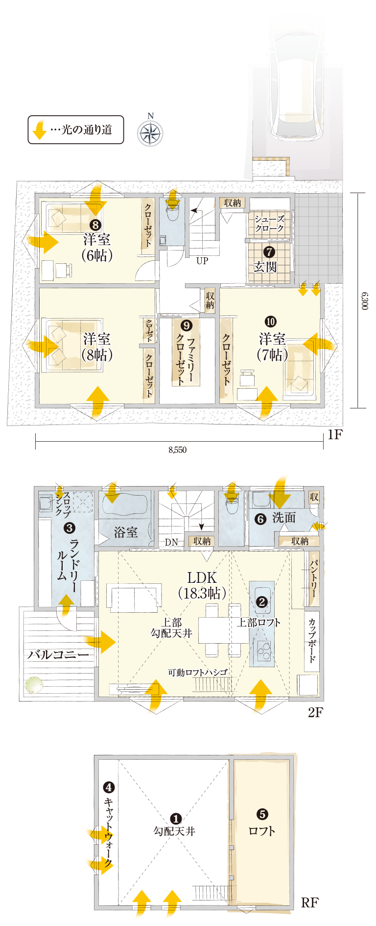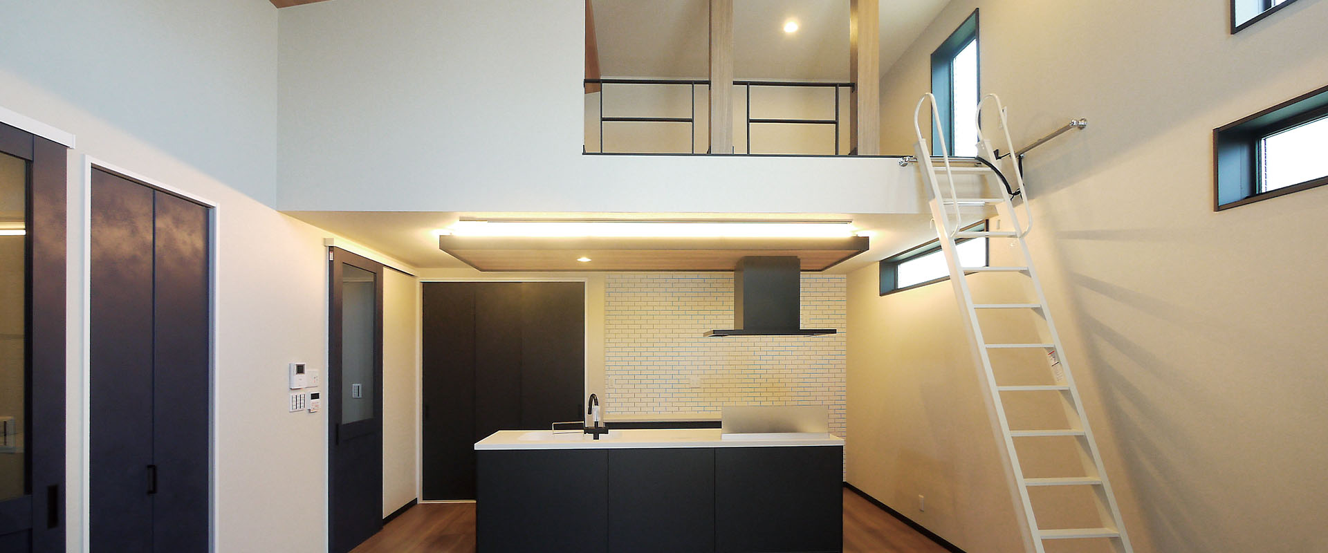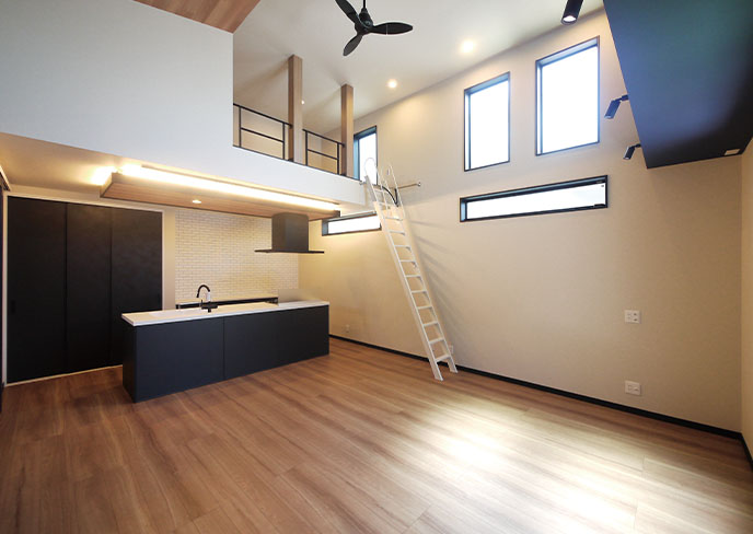 ❺キッチンの上はロフトになっており、リビングとつながる空間としてお愉しみ頂けます。