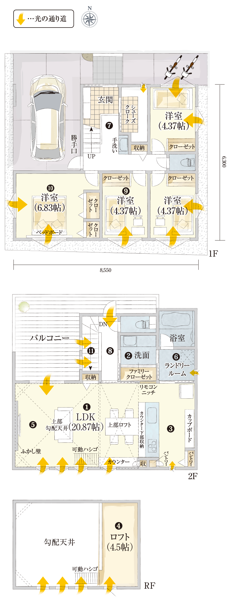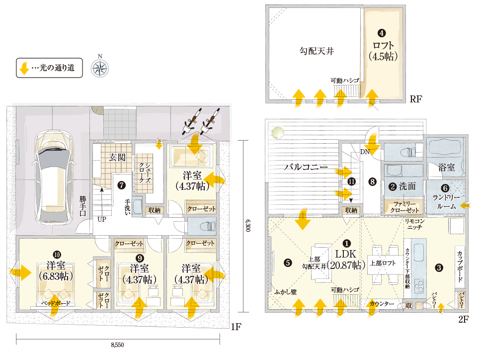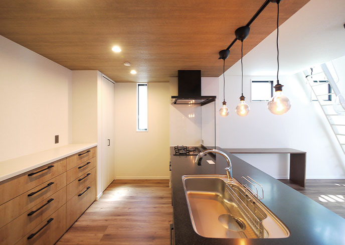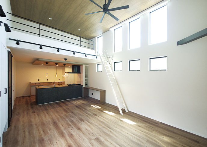❹キッチン上はロフトになっており、リビングとつながる空間としてお愉しみ頂けます。