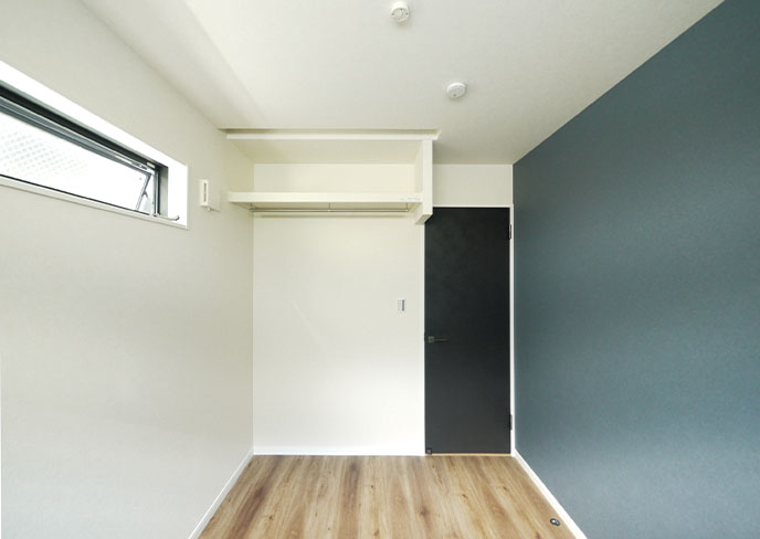 ❾使い易いオープンクロークにスリット窓、かわいい壁紙1面貼り分けと、1階の居室3室は同仕様。