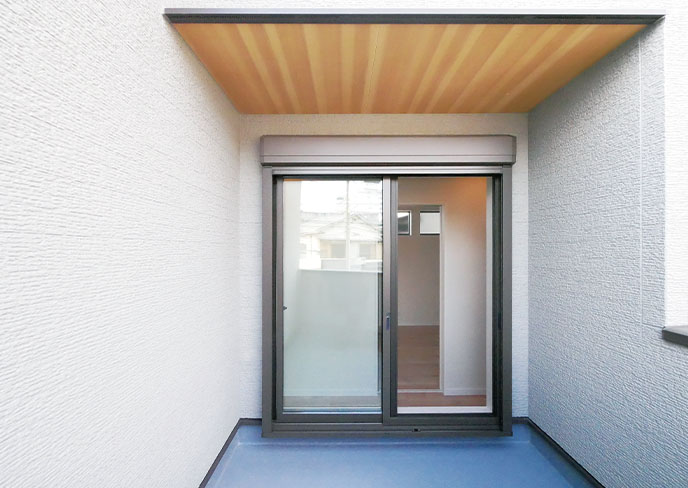 2階にはテーブルセットも置ける、ゆったりとしたバルコニーを設けました。各居室が近いので、布団を干すのにも便利です。プランターを置いたり、人工芝を敷いてワンちゃんの遊び場にしたりと楽しめます。