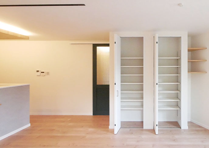 各所に配した収納で、“つかう”場所に“しまう”を実現。物の住所が決まるので、散らからない暮らしが始まります。