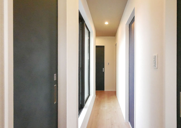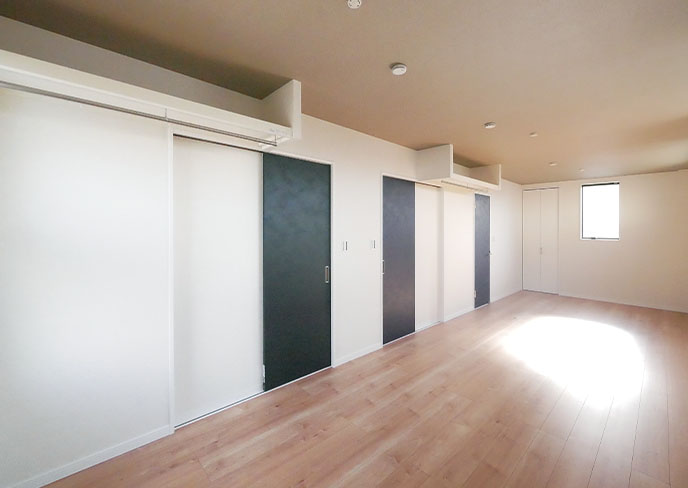❿2階の西側居室は最大3室への分割を想定したフレキシブルな空間。ご家族の成長に合わせてご利用頂けます。