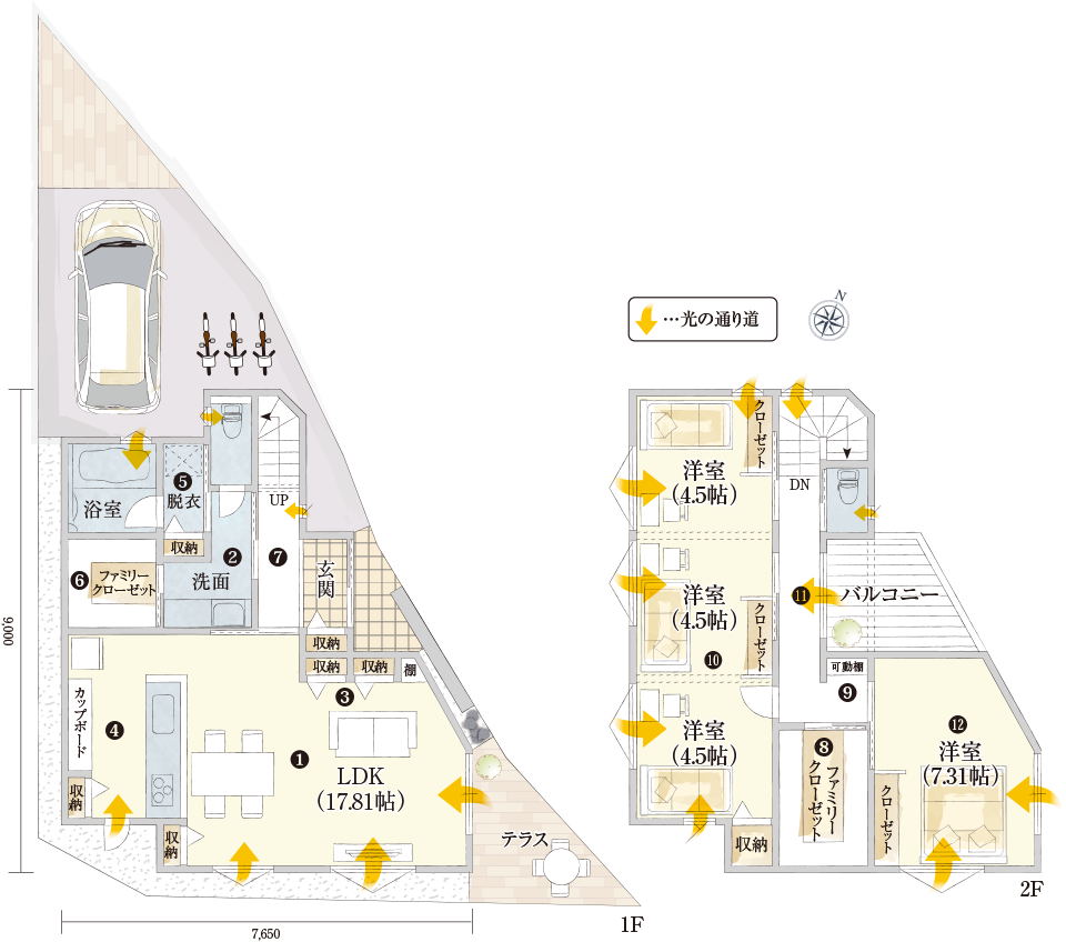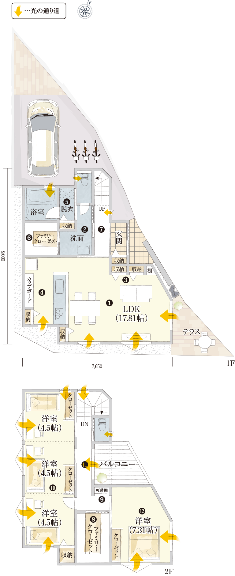 個性的な敷地形状だから実現できた、最適収納とスマート動線。