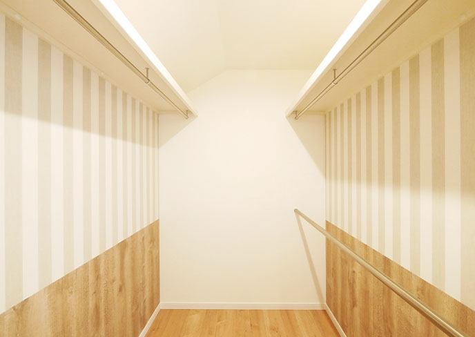 ⓫主寝室の横には季節の家電や、家族の衣類をまとめて収納できる約5帖のファミリークローゼットを完備。