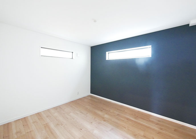 ❿ファミリークローゼットがあるので、主寝室としては不要な大きな窓も収納も設けないすっきり7帖。