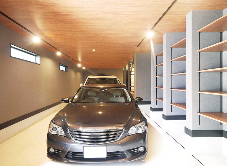 クルマを収めるための空間という常識を超え、魅せ、楽しみ、日常とつながる場所へ。2台分のビルトインガレージは、愛車やギアを美しく演出するショールームとして設計しました。木目調の天井とライティングが迎えるその先には、スケルトン階段を介して住空間がシームレスにつながります。吹抜けを中心に光と視線が巡る20帖超のLDK、南側バルコニーを活かした開放的な暮らし、各所に配置されたファミリークローゼットやランドリールームが日常動線を快適に整えます。趣味に没頭する時間も、家族と過ごす時間も、すべてが心地よく調和する住まい。「好き」を主役に据えながら、暮らしやすさを丁寧に積み重ねた一邸です。クルマを収めるための空間という常識を超え、魅せ、楽しみ、日常とつながる場所へ。2台分のビルトインガレージは、愛車やギアを美しく演出するショールームとして設計しました。木目調の天井とライティングが迎えるその先には、スケルトン階段を介して住空間がシームレスにつながります。吹抜けを中心に光と視線が巡る20帖超のLDK、南側バルコニーを活かした開放的な暮らし、各所に配置されたファミリークローゼットやランドリールームが日常動線を快適に整えます。趣味に没頭する時間も、家族と過ごす時間も、すべてが心地よく調和する住まい。「好き」を主役に据えながら、暮らしやすさを丁寧に積み重ねた一邸です。