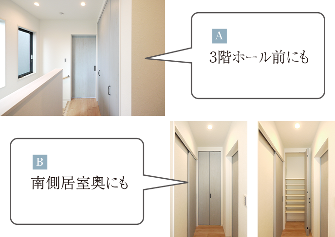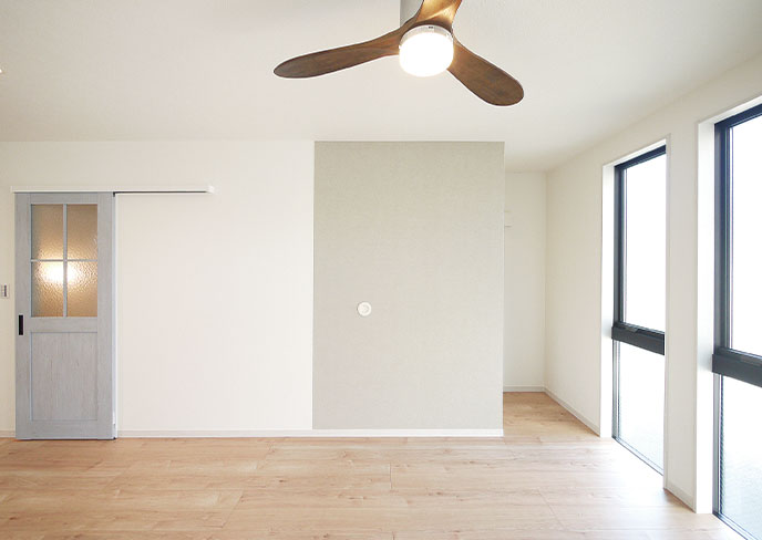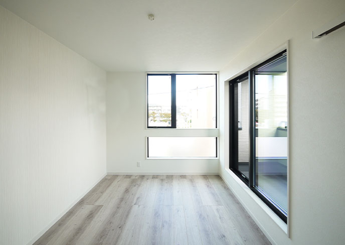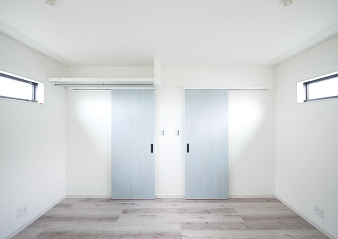 ⓫3階南側の居室はご家族の成長に合わせて間仕切ることも可能な2ドア設計。省スペース収納も完備。