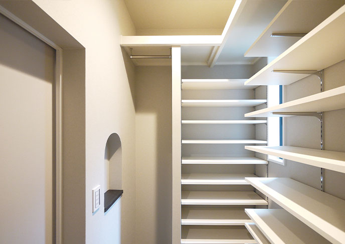 ❾大容量のシューズクローゼットは可動棚を採用。スペースをフル活用して屋外用品等も収納可能。