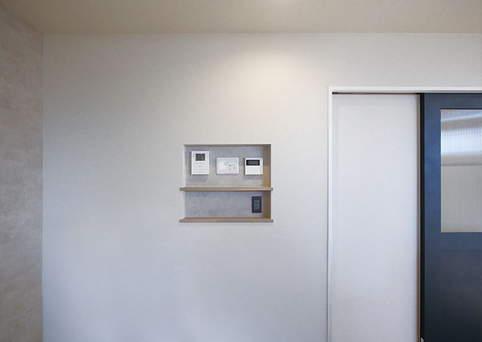 ❾インターホン周辺はニッチに収め、視覚的にもスッキリかたづき洗練された印象に。