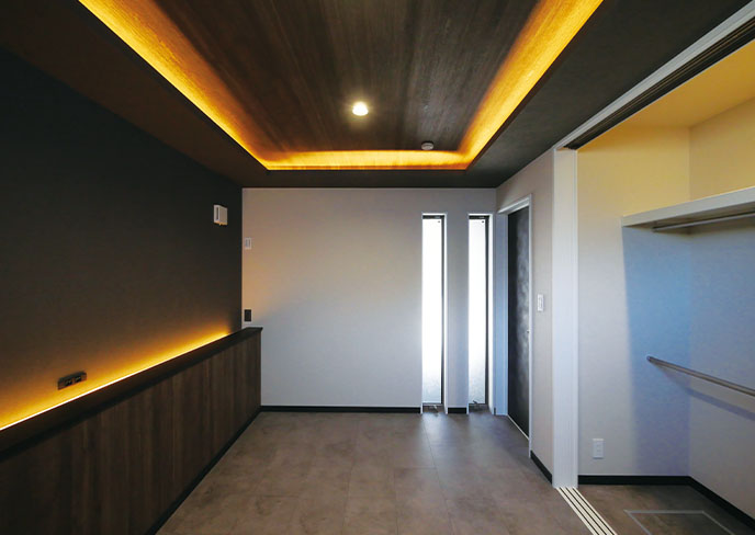 ⓫折り下げ天井からの間接照明が優しく落ち着いた空間。大容量のクローゼットで機能性も抜群。