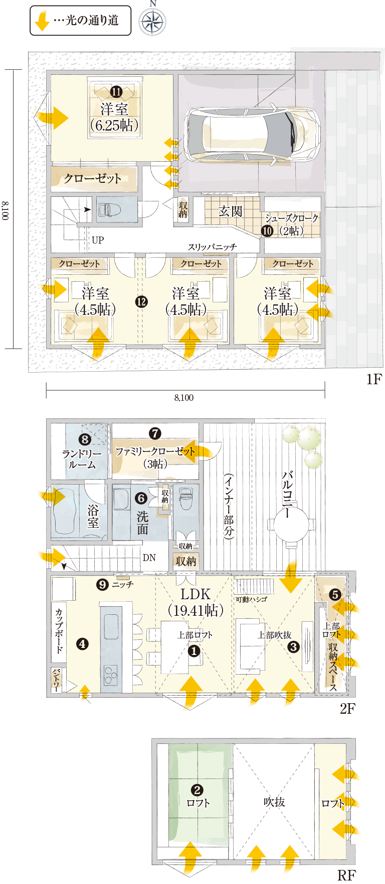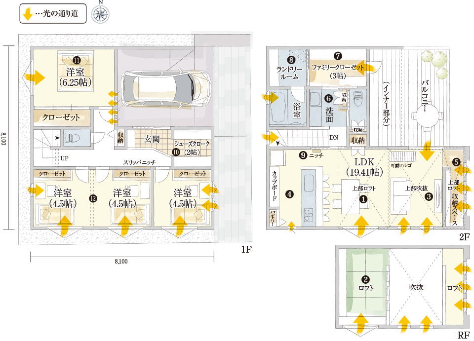 4LDK+シューズクローク+ランドリールーム+ファミリークローゼット+ロフト×2