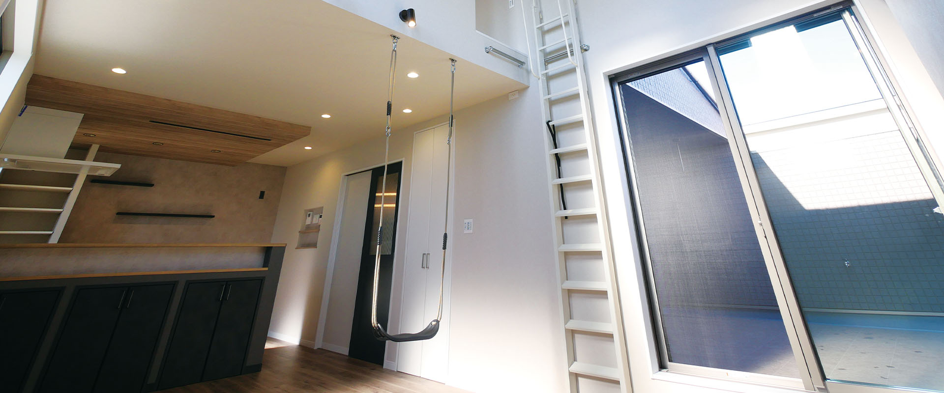 階段を上り扉を開けた瞬間に広がるのは、光あふれる開放的な2階リビング。見上げれば遊び心をくすぐるロフトが広がり、そこから揺れるブランコは子どもたちのお気に入りの特等席です。そんな賑やかなだんらんを支えるのは、徹底して考え抜かれた「機能美」です。生活感をスマートに隠す収納スペースがLDKを常に美しく保ち、ランドリーからクローゼットまで一直線に結ぶ家事動線が、忙しい毎日にゆとりを生み出します。「遊ぶ、整う、寛ぐ」のすべてが心地よく循環する住まい。家族の笑い声が自然と集まり、日々の何気ない時間が豊かに彩られる、そんな理想の暮らしを目指しました。