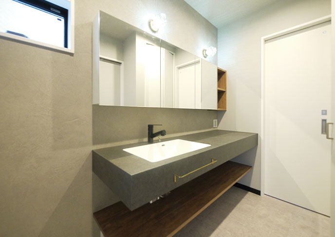 ドレッサーは、大人2人がゆったり並べるワイド設計。朝の身支度混雑を緩和する余裕の広さ。