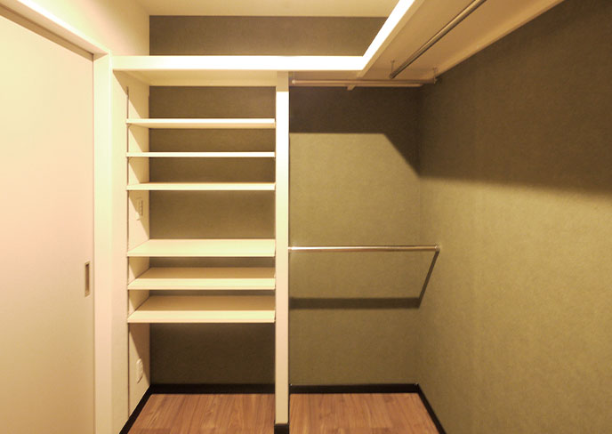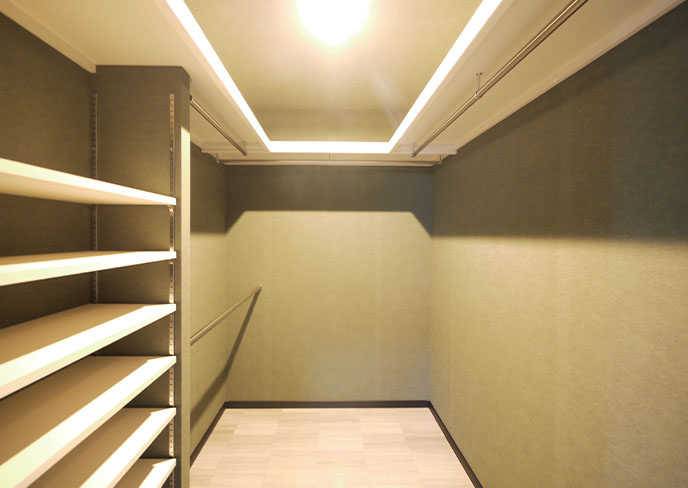 ⓫主寝室にはウォークインクローゼットを設置。季節外の衣類や家電の収納にも対応する大容量を確保。